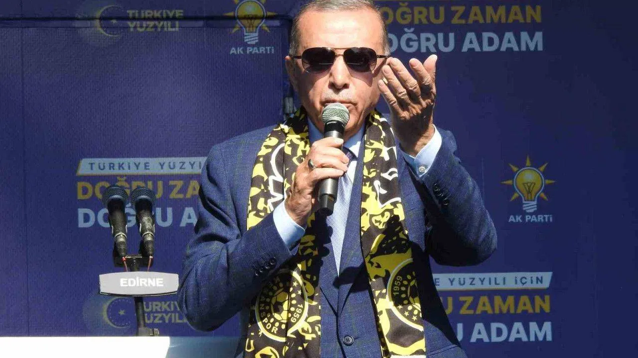 Kaybedeceklerini anladıkları için şimdiden çamura yatmaya başladılar. Her partinin temsilcisinin yer aldığı heyetlerin gözetimindeki çalışmaların üzerine sanki bunu bilmiyormuş gibi gölge düşürmeye çalışıyorlar. Teknolojik imkanların böyle geliştiği dönemde bu numaralar bayatladı. Kendi provokasyonları ile olay çıkarıp utanmadan şehirlerimizi karalamaya çalışıyorlar. Dün İstanbul’u gördünüz, 1 milyon 700 bin insan Atatürk Havalimanı’ndaydı. Milleti tahrik ederek buna güçleri yetmeyince tahkir ederek yaşayacakları hezimete kılıf arıyorlar. Edirne’de karşımda 25 bin kişi var. Şu 25 bin kişi bütün ahbabı yaranı ne var ne yok hepsiyle görüşerek inşallah sandığa taşıyıp pazar günü sandıkları patlatmaya var mıyız. Aynı senaryoyu bir önceki seçimlerde de sahnelediler. Bu milleti kirli oyunlarına alet edemeyecekler. Sizlerden ricam 14 Mayıs’ta sandıklara iyi sahip çıkın. Bu da yetmez 14 Mayıs’a kadar tercih konusunda kafası karışık bir komşunuzu, akrabanızı dostunuzu bulup Türkiye yüzyılı safına katmanızı istiyorum. Salgından savaşa kadar küresel krizlerin yol açtığı sıkıntılarla da boğuştuk. Dimdik ayakta kalmayı başardık. Milletimizin günlük hayatında yaşadığı sıkıntıların farkındayız. Türkiye’nin asırlık sorunlarını nasıl çözdüysek bunların üstesinden de biz geleceğiz. Şu Edirne’deki tarihi eserlerin dili olsa da konuşsa, acaba bunları ayağa kim kaldırdı. Bu mücadeleyi oynanan nice tuzaklara rağmen yürüttük. Milli iradenin bileğini bükemeyince ekonomik tuzakları soktular. Türkiye 21 yıldır kazancını altyapı yatırımlarına harcadı. Türkiye modern dünyada farklı bir yere ulaştı. Her alanda kendisini Gazi Mustafa Kemal Atatürk’ün gösterdiği muasır medeniyet seviyesine taşıyacak adımlar attı" diye konuştu.