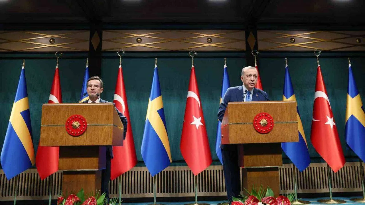 Cumhurbaşkanı Recep Tayyip Erdoğan, İsveç Başbakanı Ulf Kristersson ile ortak basın toplantısını gerçekleştirdi. İsveç Başbakanı Kristersson ve heyetini ağırlamaktan memnuniyet duyduğunu ifade eden Erdoğan, "Başbakan’ı bu vesileyle tebrik ediyor, kendisine ve hükümetine başarılar diliyorum. Başbakan’ın bu ziyareti İsveç’ten ülkemize başbakan düzeyinde 2009 yılından bu yana yapılan ilk ziyareti teşkil ediyor. Görüşmelerde ilişkileri her alanda geliştirmek hususunda ortak iradeye sahip olduğumuzu belirledik. İkili münasebetlerinin yanı sıra Türkiye-AB, Rusya-Ukrayna savaşı başta olmak üzere bölgesel ve küresel meseleleri değerlendirdik" açıklamasında bulundu.