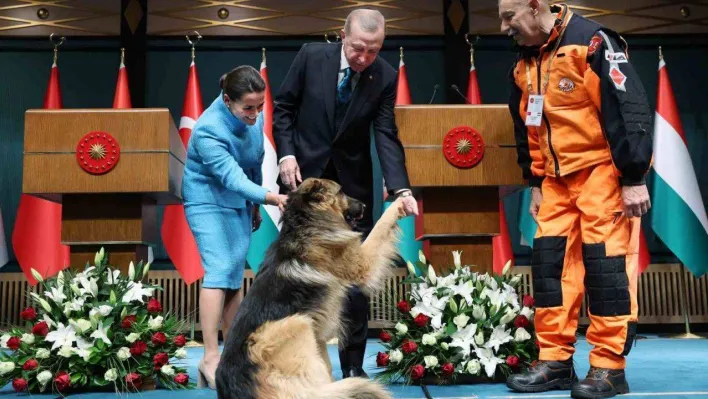 Basın toplantısında Macaristan Arama Kurtarma ekibi de yer aldı. 35 kişinin enkaz altından kurtarılmasında önemli bir görev üstlenen Hope isimli arama kurtarma köpeği de basın toplantısının olduğu salondaydı. Cumhurbaşkanı Erdoğan, Hope isimli köpeği ekiple birlikte sahneye davet etti. Cumhurbaşkanı Erdoğan ve Novak bir süre Hope ile ilgilendi.