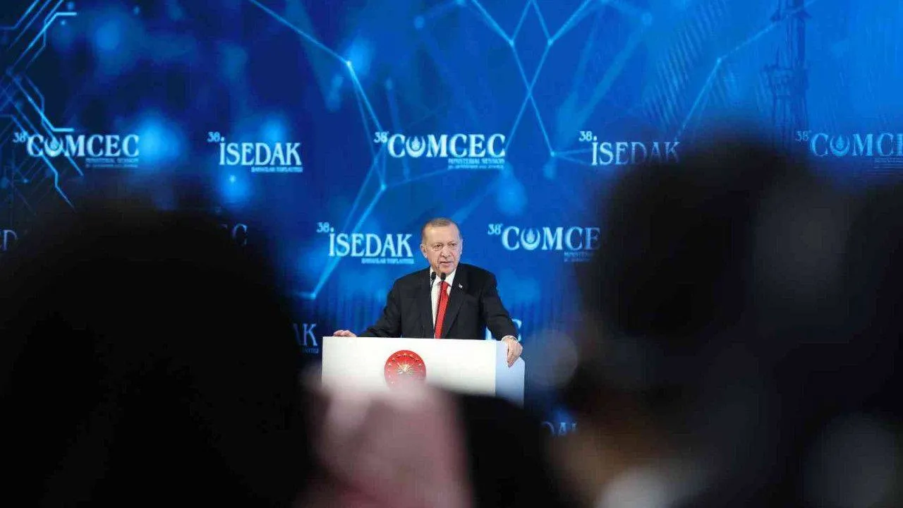 Cumhurbaşkanı Erdoğan, İstanbul Kongre Merkezi’nde düzenlenen İslam İşbirliği Teşkilatı (İİT) Ekonomik ve Ticari İşbirliği Daimi Komitesi (İSEDAK) 38. Toplantısı Açılış Programı’na katıldı. Burada bir konuşma yapan Erdoğan, "Siz, insanlar için ortaya çıkarılmış en hayırlı ümmetsiniz. Resul-ü Ekrem Efendimiz Aleyhisselatü Vesselam ise ’İnsanların en hayırlısı insanlara en faydalı olandır’ buyurmuştur. Müslüman olmak şahsından ve ailesinden başlayarak içinde yaşadığı topluma ve tüm insanlığa karşı kendisini mesul hissetmek demektir. İslam ümmetinin mensupları olarak, hiçbirimiz kendimizi dış dünyadan, çevremizde ve ötesinde yaşanan hadiselerden izole edemeyiz. Afrika’dan Asya’ya bütün bu coğrafyalarda dünyanın neresinde bir zulüm varsa, çatışma varsa, açlıktan ve susuzluktan ölen masum varsa, vebali hepimizin üzerinedir. Yemen’de, Somali’de, Afganistan’da, Arakan’da adeta bir deri bir kemik kalmış çocuklar kadar Ukrayna’daki çatışmaların mağdur ettiği sabiler de bizim evlatlarımızdır. Suriye’nin kuzeyinde hayata tutunma mücadelesi veren kadınlar nasıl bizim öz kardeşimizse Batılıların refahı için gayriinsani şartlarda 15 saat çalışamaya zorlanan Asyalı emekçi kadınlar da bizim kardeşimizdir. Bizler yetimlere şefkatle davranan, hiçbir ayrım gözetmeden mazlumlara sahip çıkan, fakir ve fukaranın elinden tutan bir Peygamber’in ümmetiyiz. Paylaşmanın bereketine, dayanışmanın gücüne inanan, veren eli alan elden üstün gören bir medeniyetin mensuplarıyız. Dillerimiz, kültürlerimiz, yaşadığımız topraklar farklı olsa da aynı büyük ailenin fertleriyiz. Bu vasıflarımızla kendi toplumumuz yanında dünyanın neresinde olursa olsun tüm kardeşlerimizden sorumluyuz. Elbette her ailede olduğu gibi bizlerin arasında da kimi zaman tartışmalar, hiç arzu edilmeyen gerilimler yaşanabiliyor" dedi.