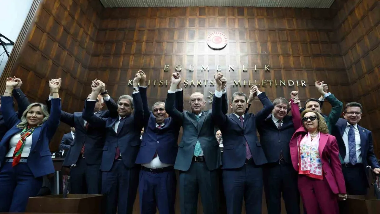 TBMM Başkanı Numan Kurtulmuş’un ’Terörsüz Türkiye Komisyonu’na başarıyla başkanlık ettiğinin altını çizen Erdoğan, "Meclis Başkanımız maruz kaldığı hadsizliklere ve edepsizliklere rağmen komisyonun bütün bu kıymetli çalışmalarına başarıyla riyaset etti. DEM Parti heyeti ve Grubu aynı şekilde gayet sağduyulu bir tavır içinde oldu. Cumhur İttifakı ortağımız Milliyetçi Hareket Partisi Genel Başkanı Sayın Devlet Bahçeli de ilk günden itibaren yaptığı cesur, ufuk açıcı, yol gösterici açıklamalarıyla sürecin bugünlere gelmesine eşsiz katkılar sağladı. Bizde gerek hükümet gerekse parti olarak son derece hassas bir çizgide yürüyerek sürece mihmandarlık yaptık. Elbette bu dönemde bilinen, bilinmeyen pek çok badireyi atlattık, pek çok sabotajı savuşturduk. Pek çok düğümü çözdük. Değerli kardeşlerim bütün bunlarla beraber dün biliyorsunuz komisyonumuz 17. toplantısını gerçekleştirdi. Milli Savunma Bakanımız, İçişleri Bakanımız ile MİT Başkanımız komisyonu ve milletvekillerimizi gelinen son aşamayla ilgili detaylıca bilgilendirdi. Sürecin selameti açısından yapılmasında fayda görülen hususlar komisyon üyeleriyle açık yüreklilikle paylaşıldı. Komisyonun fikir ve hedef birliği içinde çalışmasını son derece kıymetli buluyorum. Komisyonun terörsüz Türkiye süreciyle birlikte ülkemiz demokrasisine, birlik ve beraberliğimize, toplumumuzun farklı kesimleri arasında diyalog ve empatinin güçlendirmesine yaptığı katkıları takdirle karşılıyor, Meclis başkanımızı ve komisyon üyelerimizi canı gönülden tebrik ediyorum" dedi.