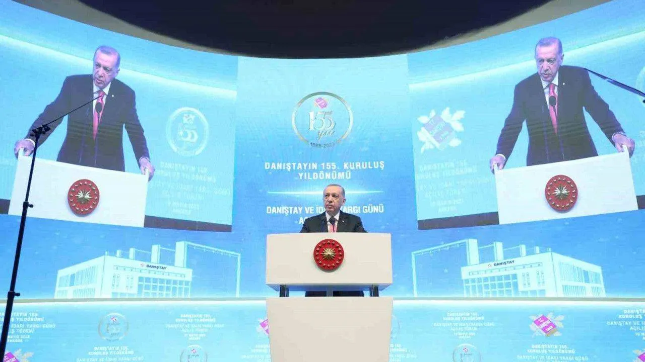 Cumhurbaşkanı Recep Tayyip Erdoğan, Danıştay Konferans Salonu’nda gerçekleştirilen Danıştay Başkanlığının 155. kuruluş yıldönümü töreninde konuştu. Danıştay’ın çok önemli görevler ifa ettiğini belirten Erdoğan, 2017 yılındaki Anayasa değişikliği ile ülke yönetiminin en önemli reformlarından birini gerçekleştirdiklerini kaydetti. Cumhurbaşkanlığı Hükümet Sistemi’ni kurarken güçler ayrılığı ilkesini de tahkim ettiklerini aktaran Erdoğan, yasama-yürütme ve yargı arasındaki ilişkileri daha keskin hatlarla belirleyerek demokrasinin standardını yükselttiklerini söyledi. Bu anayasa değişikliği ile önemli bir düzenleme yaptıklarını ifade eden Erdoğan, ülkemizde vesayet ve darbe süreçlerinde bu tartışmaların can acıtıcı, kurumları yıpratıcı bir şekil aldığını belirtti. Bir dönem yargı üzerine çöken FETÖ gölgesinin herkesi üzdüğünü söyleyen Erdoğan, devletin diğer kurumları ile birlikte yargıyı da FETÖ’den temizleyerek yeni bir dönem başlattıklarını bildirdi. Ülkenin her türlü hukuk dışı oluşum gibi hangi isim ve görünüm altında olursa olsun terör örgütleriyle yürüttüğü mücadelede yargının gösterdiği sağlam duruşun şahidi olduklarını belirten Erdoğan, her ne kadar vesayet dönemi hayali ve hevesiyle yargı kurumlarına saldıranlar hala olsa da bu taktik söylemlere kimsenin itibar etmediğini söyledi.
