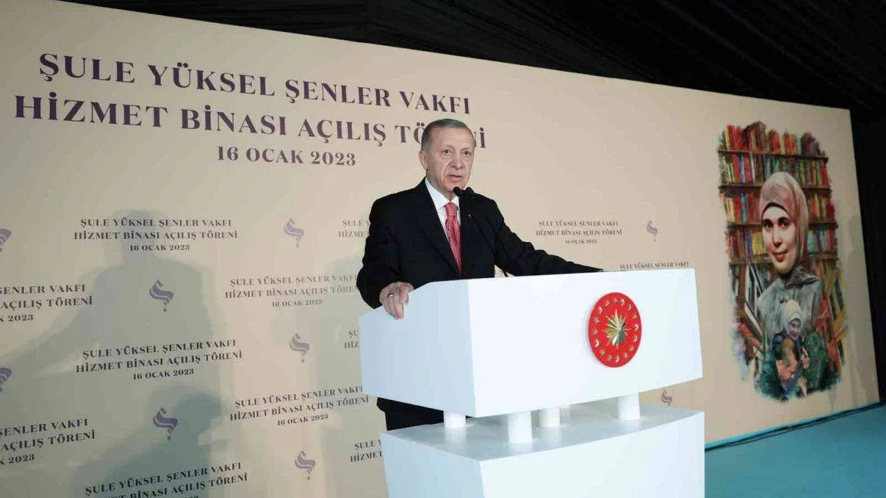 Cumhurbaşkanı Recep Tayyip Erdoğan Eyüpsultan’da Şule Yüksel Şenler Vakfı açılışına katıldı. Törende konuşan Erdoğan, “Eserleri kitapları, konferansları ve destansı mücadelesi ile yakın tarihimizde silinmez izler bırakan Şule Yüksel Şenler hanımefendiyi rahmetle ve özlemle yad ediyorum. Onun aziz hatırasına sahip çıkmak ve örnek hayatını gelecek kuşaklara aktarmak amacıyla kurulan vakfımızın kısa sürede bilhassa kadınlarımızın arasında teveccüh görmesini memnuniyetle karşılıyoruz. Vakfımız farklı alanlarla yürüttüğü projelerle adını taşıdığı Şule Yüksel Şenler’e olan vefa borcumuzu hakkı ile yerine getirmeye gayret ediyor. Bugünden itibaren hizmet binamızın da kullanıma başlanmasıyla İnşallah vakfımızın faaliyet yelpazesinin daha da genişleyeceğine inanıyorum. Vakıf merkezimiz toplantı salonu, çok amaçlı eğitim salonu, araştırma kütüphanesi, bilişim teknoloji tasarım moda üretim atölyeleri ve kafeteryasıyla gençlerimizin uğrak mekanlarından biri olacaktır. İnşallah burası merhum Şule ablamızın uğruna ömrünü adadığı aklı selim, kalbi selim nesillerin yetiştiği bir ocak görevi görecektir” ifadelerini kullandı.