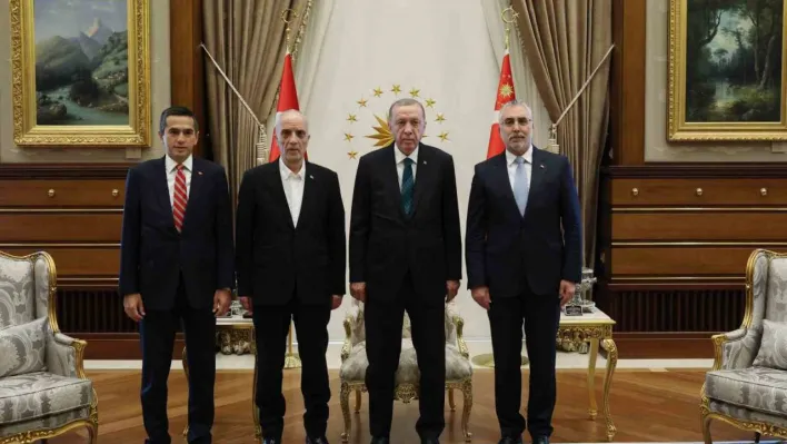 Cumhurbaşkanı Recep Tayyip Erdoğan, Çalışma ve Sosyal Güvenlik Bakanı Vedat Işıkhan, TİSK Başkanı Özgür Burak Akkol ve Türk-İş Başkanı Ergün Atalay’ı kabul etti.