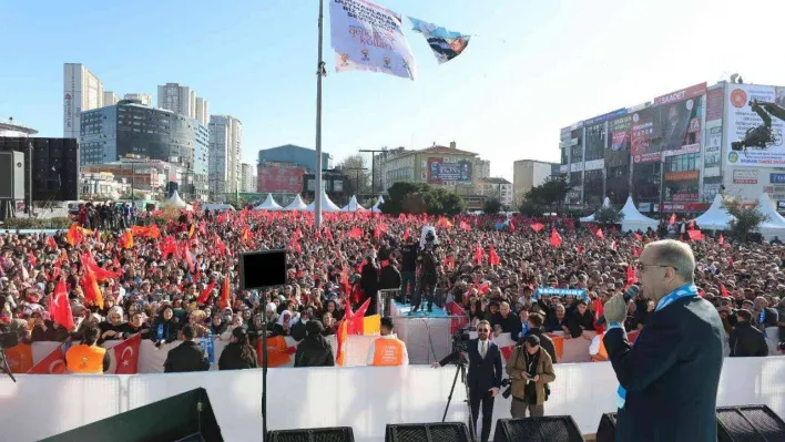 "Küresek ölçekte kartların yeniden çıkarıldığı bir dönemde ülkemizin önüne inşallah Türkiye Yüzyılı ile projemizi sunacağız. Durmayacağız. Esenyurt’taki bu kardeşlerimizin heyecanına baktığım da bende heyecanlanıyorum. Bazıları soruyor bu gücü nereden buluyorsunuz diye. Buradan sizden buluyorum. Şimdi buradan hangi siyasi partiye mensup olursa olsun hiçbir vatandaşımızın bizden ayrı yaşamasına tahammülüm yok. Hepinizi de Allah için seviyorum. Bizde Türküyle, Laz’ıyla, Çerkez’iyle, Gürcü’süyle, Abaza’sıyla, Boşnak’ıyla ayırım yok. Allah için sevmek var. Biz bu yolda böyle yürüdük, yürüyoruz. Ülkemizin boynuna geçirilmeye çalışılan esaret zincirini bugüne kadar nasıl kırdıysak 85 milyon olarak hepimizin ortak görevi nedir. İşte bunu iyi kavrayacağız. Yüreğinde memleket sevdası olan tüm vatandaşlarımızı yeter söz de, karar da, gelecek de milletindir çağrımıza katılacağına inanıyorum. Sandıkta iradenizle birlikte evlatlarımızın geleceğini kurtarmaya hazır mıyız? Şimdi öyle bir ses verin ki doğusuyla batısıyla, kuzeyinden güneyine herkes bunu duysun. Esenyurt, Türkiye Yüzyıl’ını birlikte inşa etmeye hazır mıyız? Esenyurt, evlatlarımız bırakacağımız en değerli miras olan 2053 vizyonuna sahip çıkmaya hazır mıyız? Esenyurt, Savunma sanayimizi baltalamaya çalışan o habis, kirli niyetleri bir kez daha kursaklarda bırakmaya hazır mıyız? Siz neler yaparsınız neler. Rabbim hepinizden razı olsun. Sizlerin bu gücü, sevgisi, coşkusu, kararlılığı bizimle olduğu müddetçe evelallah kimse bizi yolumuzdan alı koyamaz. Esenyurtlu kardeşlerimizin duası bizim yanımızda olduğu sürece aşamayacağımız engel, ulaşamayacağımız hedef yoktur. Tek millet, tek bayrak, tek vatan, tek devlet. Bir olacağız, iri olacağız, diri olacağız, kardeş olacağız hep birlikte Türkiye olacağız."