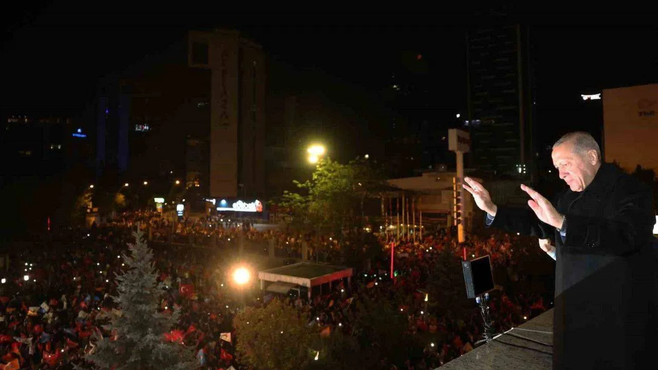Cumhurbaşkanı ve AK Parti Genel Başkanı Recep Tayyip Erdoğan, AK Parti Genel Merkezinde balkon konuşmasını gerçekleştirdi. Büyük bir coşkuyla karşılanan Erdoğan partiye gelenlere teşekkür etti. 14 Mayıs seçimleriyle bir demokrasi şölenini daha alnının akıyla tamamlandığını belirten Erdoğan sözlerini şu şekilde sürdürdü: