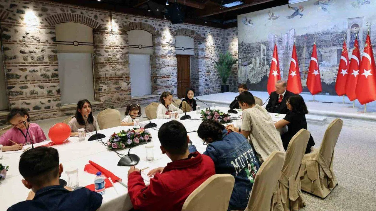 Cumhurbaşkanı Erdoğan Dolmabahçe Ofisi'nde depremzede çocukları kabul etti