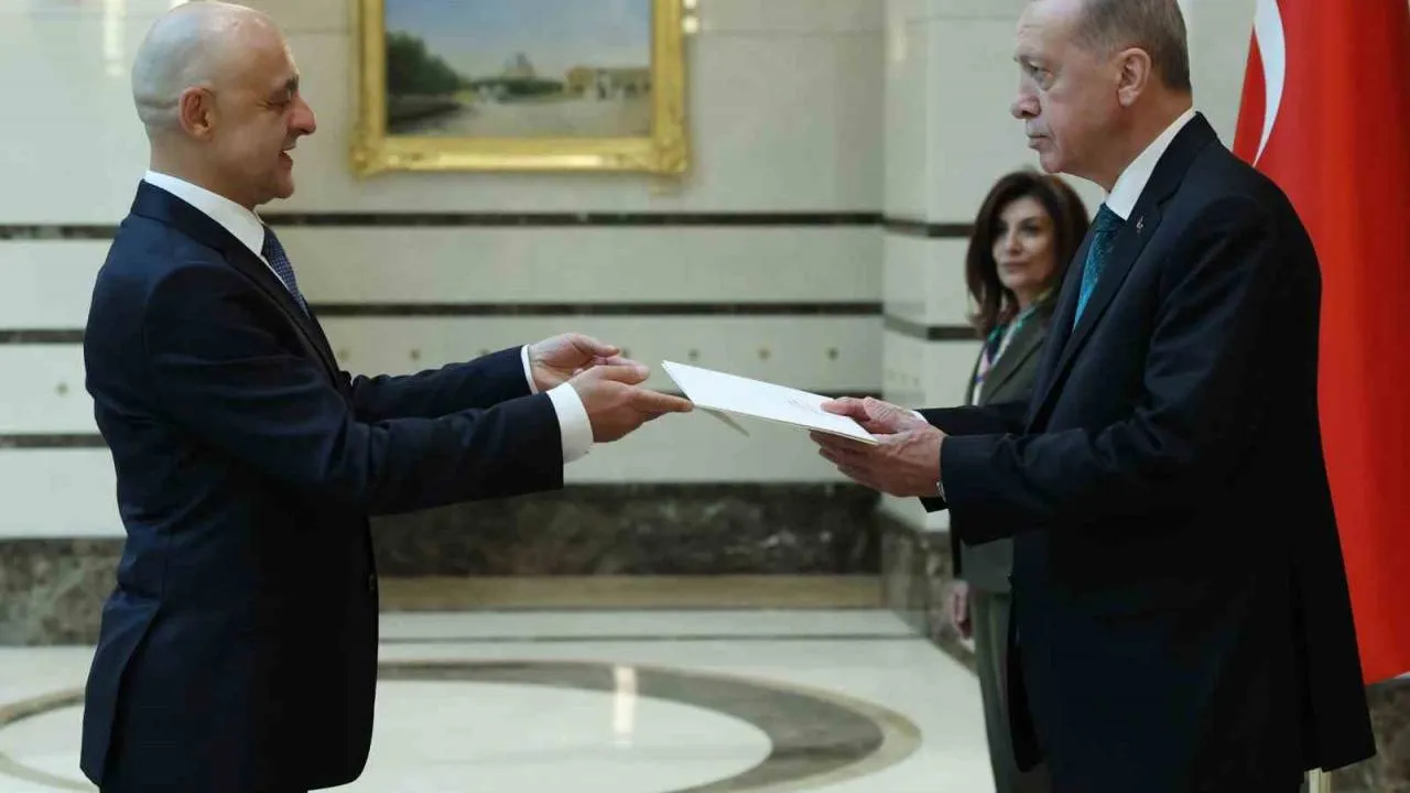 Büyükelçi Lang, Cumhurbaşkanı Erdoğan’a güven mektubunu Türkçe ’ Size, bu güven mektubunu sunmaktan onur duyarım’ ifadeleriyle takdim etti.