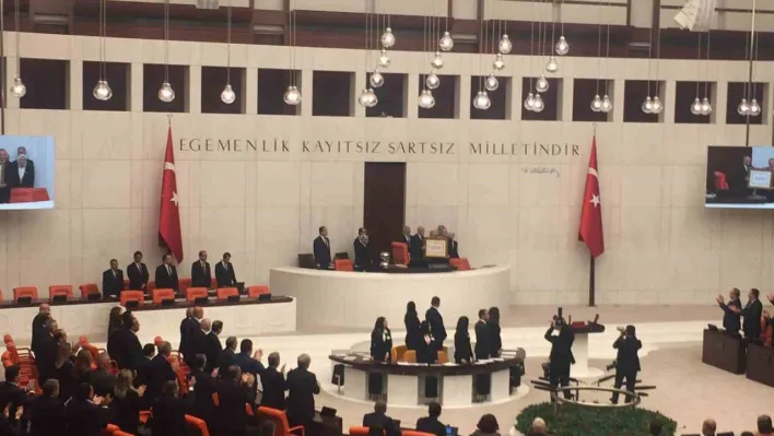 CHP ve Yeşil Sol Parti grupları ayağa kalkmadı. İYİ Parti grubu ayağa kalktı ama alkışlamadı.
