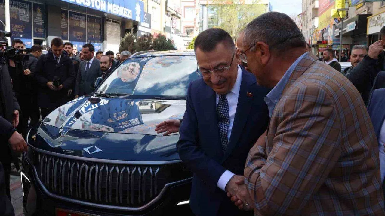 Cumhurbaşkanı Yardımcısı Fuat Oktay, AK Parti Sincan Seçim Koordinasyon Merkezinin açılışına Togg ile geldi.