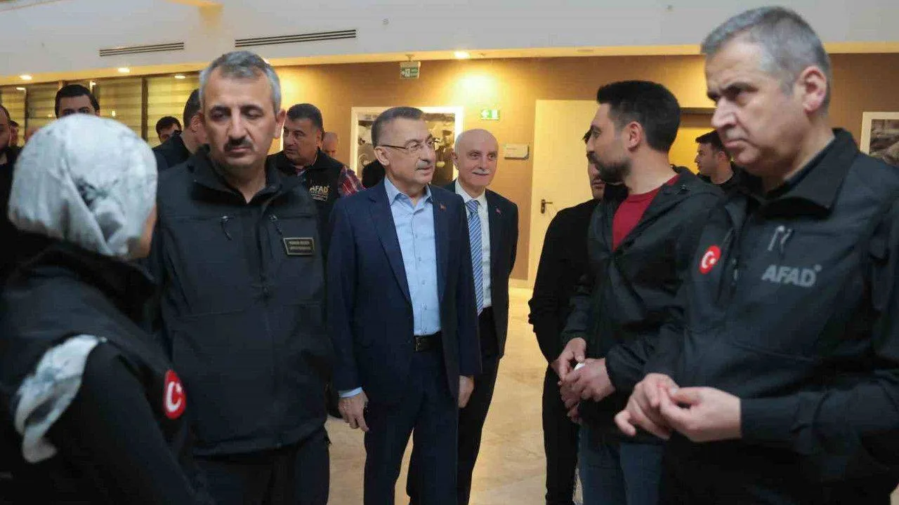 Cumhurbaşkanı Yardımcısı Fuat Oktay, 6 Şubat’ta meydana gelen Kahramanmaraş merkezli depremlerin ardından İçişleri Bakan Yardımcısı Tayyip Sabri Erdil ve AFAD Başkanı Yunus Sezer’den afet bölgesinde yürütülen çalışmalara ilişkin bilgi aldı. Toplantının ardından AFAD yemekhanesinde iftar yapmak için AFAD personeli ile birlikte yemek sırasına giren Oktay, AFAD Koordinasyon Merkezi’nde çalışan personelle birlikte iftar yaptı.