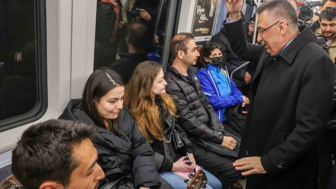 Cumhurbaşkanı Yardımcısı Fuat Oktay, Ankara metrosunda vatandaşlarla sohbet etti.