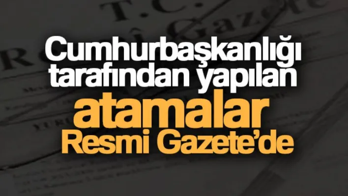 Cumhurbaşkanlığı tarafından yapılan atamalar hakkındaki karar Resmi Gazete'de yayımlandı.