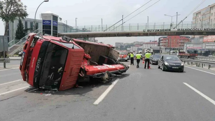 Kocaeli’nin Gebze ilçesinde arıza yapan otomobile arkasından gelen sepetli vinç çarptı. Vincin devrildiği kazada yaralanan olmadı.