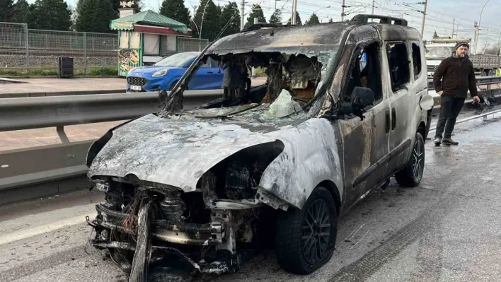 Kocaeli'nin İzmit ilçesi D-100 kara yolu geçişinde alev alev yanan hafif ticari araçtan geriye hurda yığını kaldı.