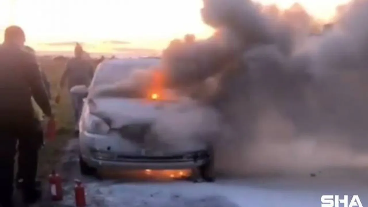 Silivri'de D-100 karayolunda seyir halindeki bir otomobil alev alev yandı. Alevlere teslim olan otomobil vatandaşların yangın tüpüyle müdahalesiyle söndürüldü.