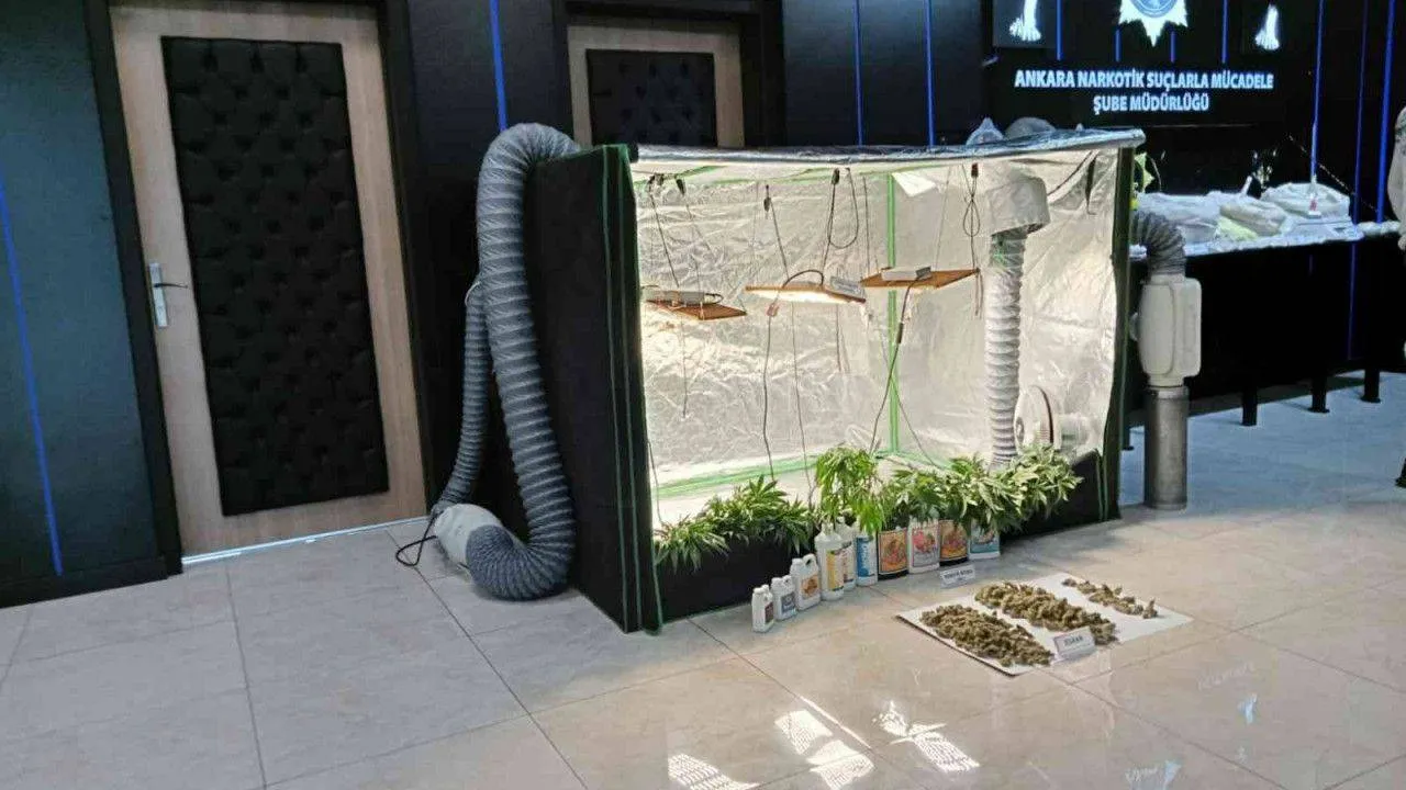 Zehir tacirlerine ait 2 evde yapılan aramalarda ‘iklimlendirme sistemi’ olarak tabir edilen esrar yetiştirme düzeneği ele geçirildi. Zanlıların sistemin sorunsuz çalışması için odayı özel olarak tasarladıkları ve havalandırma sistemi kurdukları öğrenildi. Öte yandan operasyon çerçevesinde toplam 1 buçuk kilogram esrar, 3 adet sentetik ecza, 2 kilo 73 gram metamfetamin, 20 adet kenevir tohumu, 68 gram kokain, 10 gram bonzai, 1 gram amfetamin, 2 adet ecstasy, 61 kilo 658 gram eroin, 42 adet pipe, 134 kilogram tütün, 861 adet adet ikiyüzlük makaron, 6 bin 800 adet dolu makaron, 1 adet tütün sarma makinası, 1 adet tüfek ve 2 adet hassas terazi ele geçirildi.