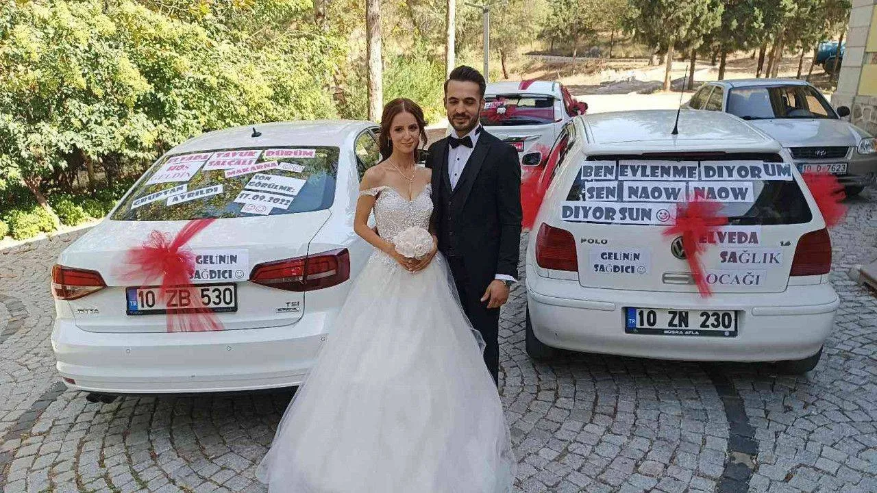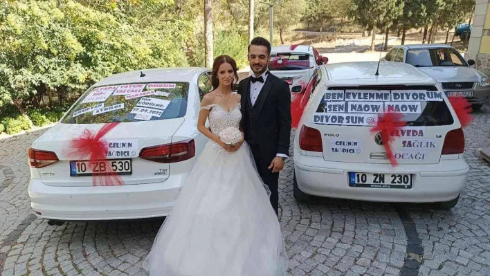 Gelinin arkadaşları kendi arabalarını süsleyerek konvoya eşlik etti, düğün töreninde ise cama yazdıklarını hediye ettiler.