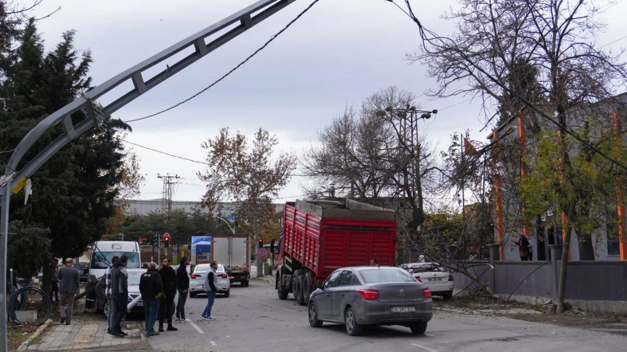 Damperi açılan kamyon direği devirdi 3 araç zarar gördü
