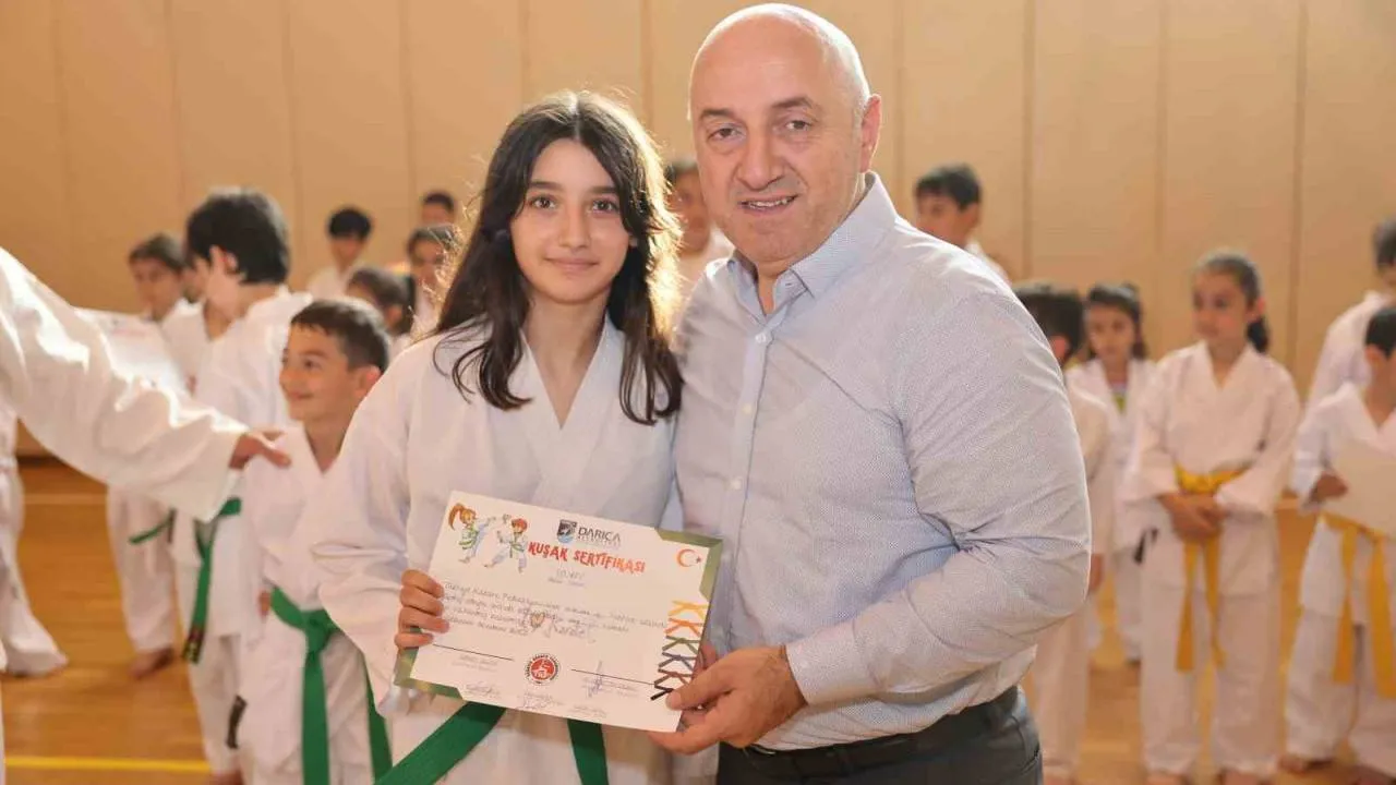 Darıca’da 75’i karatede ve 40’ı da tekvandoda olmak üzere toplam 115 sporcu bir üst kemere geçme başarısı gösterirken, genç sporcuların sertifikalarını Darıca Belediye Başkanı Muzaffer Bıyık dağıttı. Genç sporcuları azim ve başarılarından dolayı kutlayan Başkan Muzaffer Bıyık, sporcuları ve antrenörleri tebrik etti.