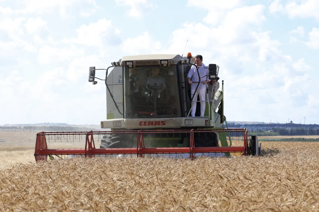 İBB Başkanı Ekrem İmamoğlu ve Silivri Belediye Başkanı Bora Balcıoğlu, İstanbul'un iklim ve toprak şartlarına uyumlu yerli buğdayların deneme hasadını, Silivrili çiftçi Ercan Tarladaçalışır ile birlikte yaptı.