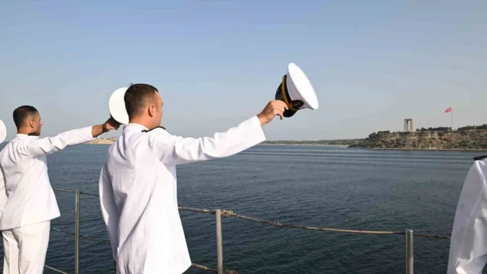 Milli Savunma Üniversitesi Deniz Harp Okulu öğrencileri, Açık Deniz Eğitimleri çerçevesinde Ege Denizi'ne intikal ettikleri seyirde Çanakkale Şehitler Abidesi'ni selamladılar.