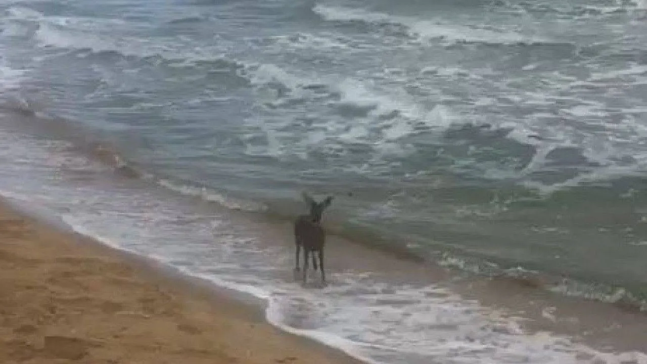 Karadeniz'e kıyısı bulunan Tekirdağ'ın Saray ilçesinde bir karaca yavrusu denizin kıyısında suların içinde koşarken görüntülendi.