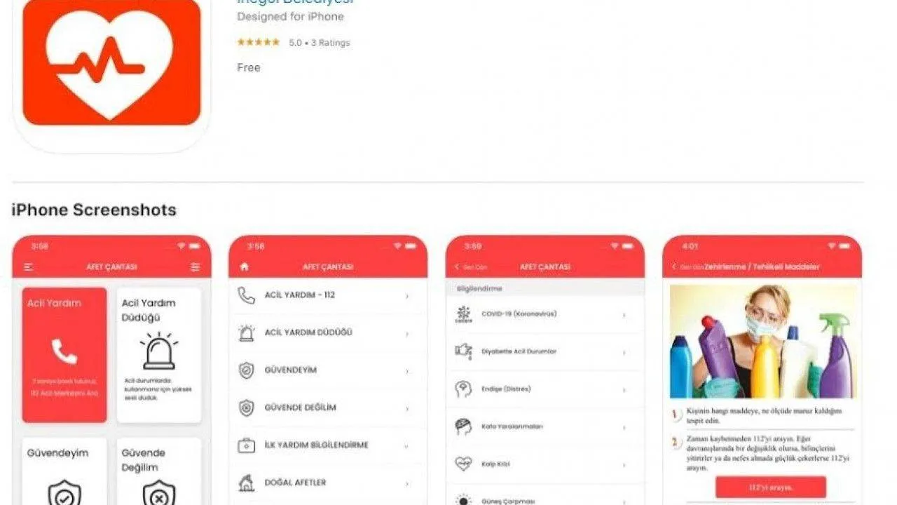 İnegöl Belediyesi tarafından akıllı telefonlar için hazırlanan Afet Çantası programı afet anında "güvendeyim ya da güvende değilim" mesajı göndermenin yanısıra, GSM sistemi olmadan 112’yi arama ve acil yardım düdüğü çalma özelliği ile hayat kurtarıyor.