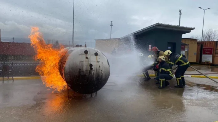 Kahramanmaraş merkezli asrın felaketinde deprem bölgesinde 82 cana umut olan Kocaeli Büyükşehir İtfaiyesi, İzmit'te otomobil parçaları üreten iş yerine acil durum ekiplerine eğitim verdi.