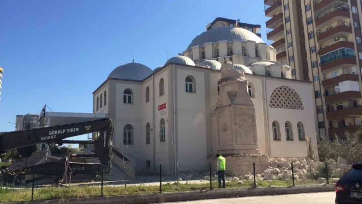 Adana'da meydana gelen depremde hasar gören Hacı Şevki Özgür Camii'nin minaresi iş makinasıyla kontrollü şekilde yıkıldı.