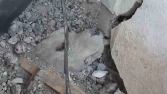 Kahramanmaraş merkezli depremlerde yıkılan bir binanın enkazından 6 gün sonra sağ kurtarılan köpeğin görüntüleri ortaya çıktı.