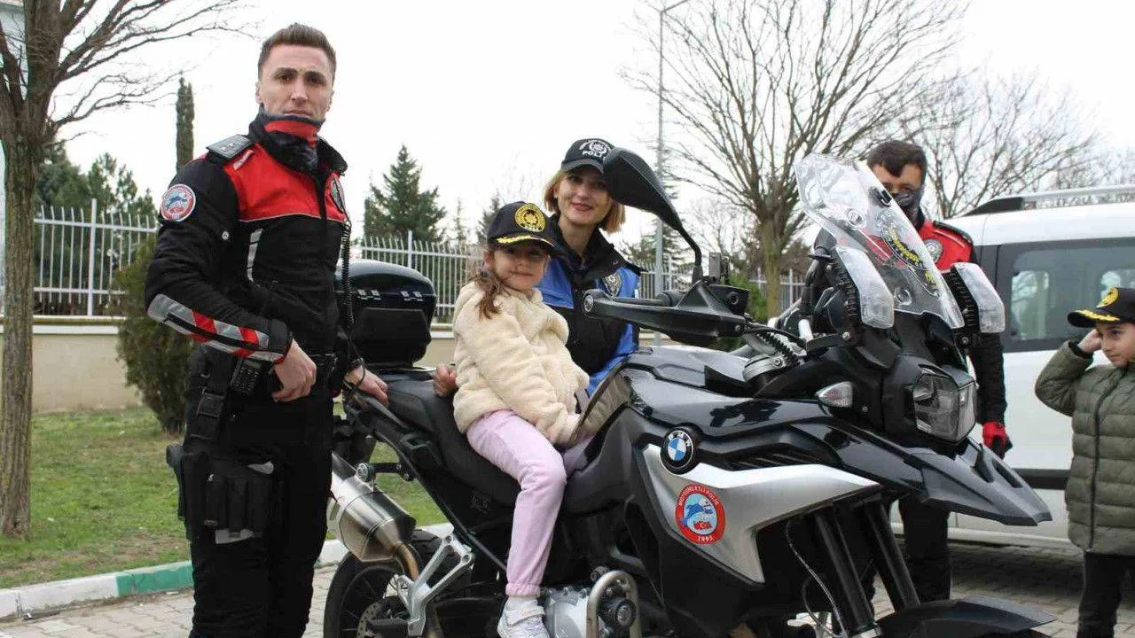 Etkinlikte çocuklara uçurtma, polis şapkası ve şeker hediye edildi.