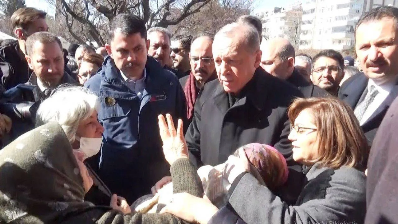 Gaziantep’te Botanik Bahçesi’nde depremzedeler için kurulan çadırları ziyaret eden Cumhurbaşkanı Erdoğan, depremzedelerle konuşup dertlerini dinledi. Erdoğan’ın yanına "Çok görmek istiyorum" diyerek yanaşan bir kadın, önce Erdoğan’ın elini öptü, sonra da sarılarak ağladı. Cumhurbaşkanı Erdoğan’a, kendisini çok sevdiklerini söyleyen depremzede, büyük bir facia yaşadıklarını söyleyerek hıçkıra hıçkıra ağladı. Kadını Gaziantep Büyükşehir Belediye Başkanı Fatma Şahin, "Annem, annem, gelin birlikte oturacağız" diyerek teskin etti. Erdoğan’a yaklaşan bir başka kadın ise, "Allah, devletimize milletimize zeval vermesin. Allah sizi başımızdan eksik etmesin" diyerek dua etti.