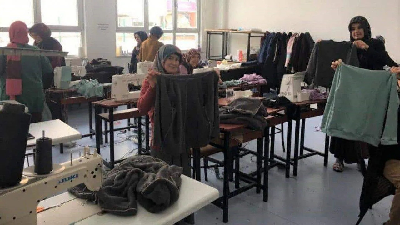 Kahramanmaraş merkezli meydana gelen ve 10 ili derinden etkileyen depremler sonrasında Bolu Halk Eğitim Merkezi'nde bir araya gelen kadınlar, depremzedeler için kıyafet dikmeye başladı.