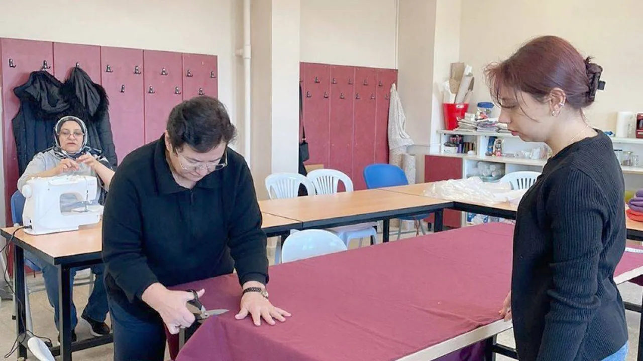Halk Eğitimi Merkezi Giyim Üretim Atölyesi'nde deprem bölgesine gönderilmek üzere battaniye dikimine başlandı.