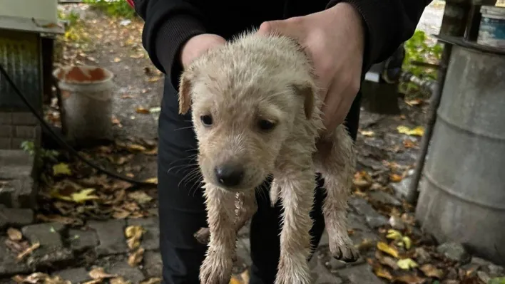 Kocaeli'nin Başiskele ilçesinde dereye düşen yavru köpek, itfaiye ekipleri tarafından çıkarıldı.