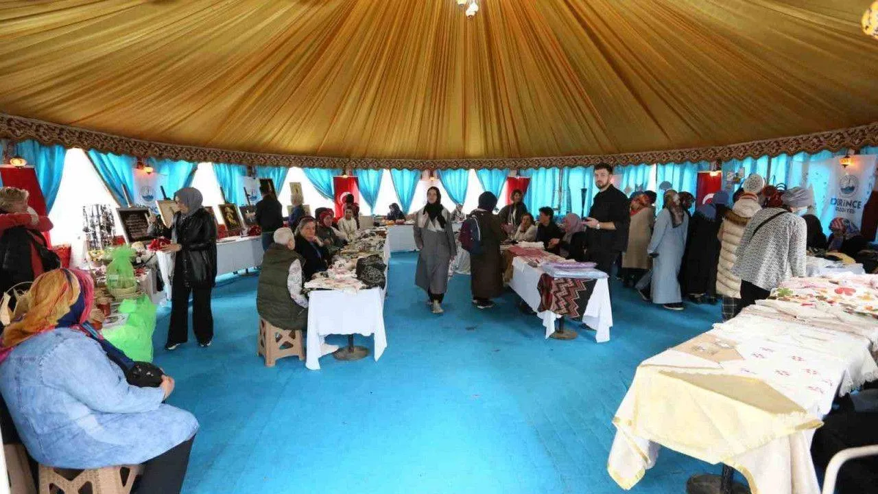 DERMEK kursiyerlerinin hazırladığı el emeği, göz nuru eserlerin yer aldığı Kadın Emeği Çarşısı açıldı. Birbirinden güzel eserlerin yer aldığı çarşıda ürünlerini satacak olan kursiyerler el emeklerini kazanca dönüştürecek.