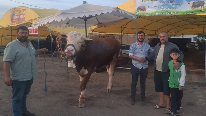 Tekirdağ'da yaklaşan bayram öncesi kurulan kurban pazarına getirilerek satışa sunulan bin 75 kiloluk 'Kral' isimli dana, 135 bin liraya alıcı buldu.