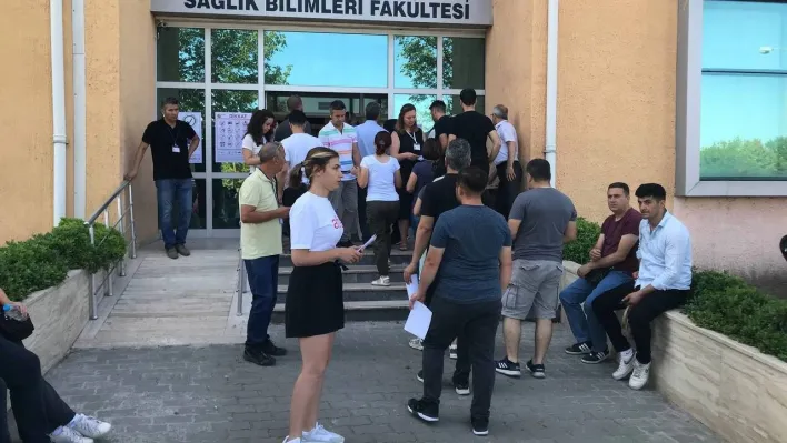 Edirne'de ÖSYM tarafından düzenlenen Dikey Geçiş Sınavı'nda (DGS) geç kalan adaylar kapıdan dönmek zorunda kaldı.