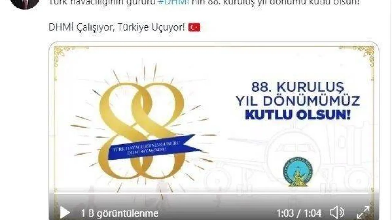 DHMİ Genel Müdürlüğü, kuruluşunun 88’inci yılını kutluyor. Kuruluş yıl dönümü münasebetiyle bir mesaj yayımlayan DHMİ Yönetim Kurulu Başkanı ve Genel Müdürü Hüseyin Keskin, elde edilen başarılara dikkat çekerek, geleceğe ilişkin kurumun hedeflerini paylaştı.
