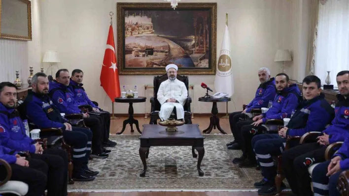 Yeryüzünün var olduğu günden bu yana afetlerin olduğunu belirten Başkan Erbaş, “Musibetten önce tedbir, musibetten sonra sabır ve yaraları sarmak, işte siz bunu yaptınız. Sizin varlığınız bir tedbir zaten. 2013 yılında Ordu Müftülüğümüzde böyle bir ekibin oluşturulmuş olması. Şimdi de sabır, metanet ve yaraları sarma, insanları kurtarma noktasındaki yapmanız gerekeni yaptınız. Başkanlığımızın hakikaten iftihar tablosu oldunuz. Size teşekkür ediyorum. Allah yar yardımcınız olsun” dedi. Ordu arama kurtarma ekibi de Başkan Erbaş’a kabulü ve desteklerinden dolayı teşekkür ederek, deprem bölgesindeki çalışmaları hakkında Başkan Erbaş’a bilgiler verdi.