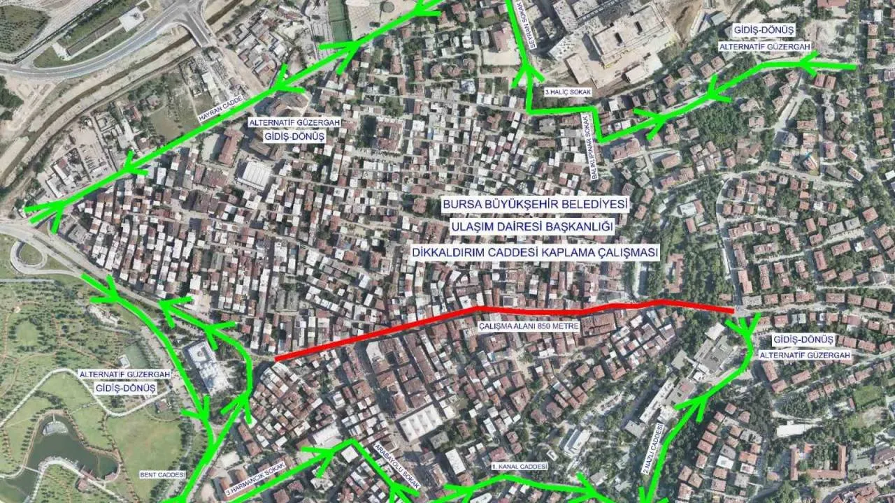 "Asfalt yenileme çalışmaları çerçevesinde merkez Osmangazi ilçesi Dikkaldırım Caddesi, 25 Eylül Pazartesi günü saat 22.00 ile 25 Eylül Salı saat 06.30 arasında trafiğe kapatılacaktır. 3 gün sürecek çalışma çerçevesinde, cadde her gün aynı saatlerde trafiğe kapatılacak ve ulaşım alternatif güzergahlardan sağlanacaktır."