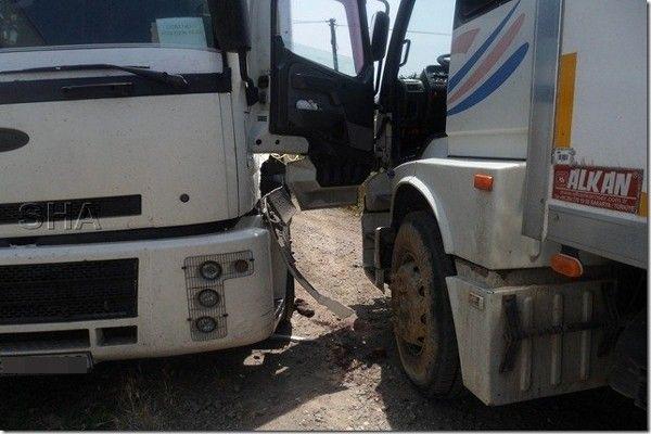 Bugün yaşanan kazada, kamyon sürücüsü az daha canından oluyordu.