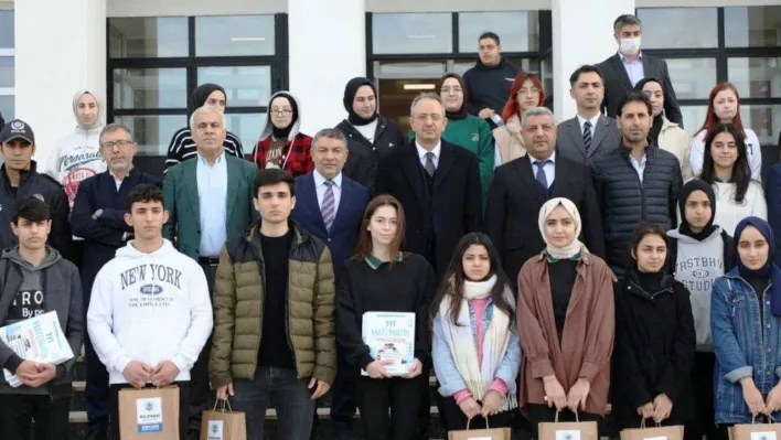 Konuşmaların ardından Kaymakam Kubilay, Başkan Şayir, İlçe Milli Eğitim Müdürü Balay ve beraberindekiler okul son sınıf öğrencilerine kitaplarını takdim etti.
