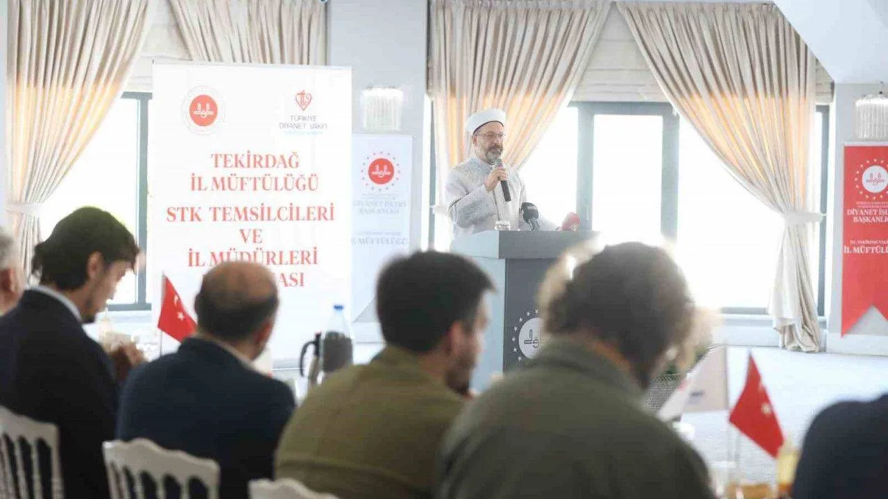 Diyanet İşleri Başkanı Erbaş, “il buluşmaları” çerçevesinde geldiği Tekirdağ’da sivil toplum kuruluşlarının temsilcileri ve kurum müdürleriyle bir araya geldi. Burada yaptığı konuşmada, Türkiye’de 28 milyon öğrenci olduğunu ve bu sayının dünyadaki 100 ülkenin nüfusundan daha büyük olduğunu belirten Erbaş, “Bizim için büyük bir zenginlik ama gençlerimize sahip çıkarsak bu zenginlikle iftihar edebiliriz, sevinebiliriz" diye konuştu.