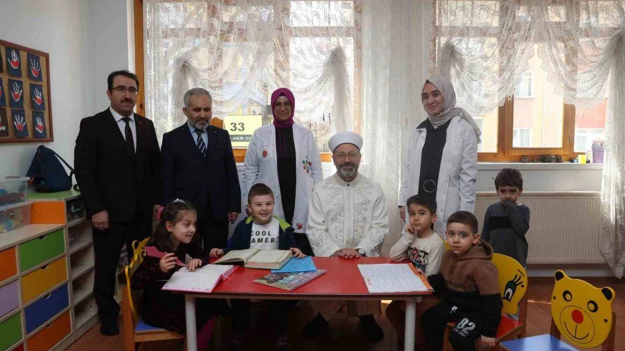 Erbaş, ayrıca Keçiören ilçesinde bulunan Aşağı Eğlence Merkez 4-6 Yaş Kur’an Kursunu ziyaret ederek, bir süre çocuklarla sohbet etti.