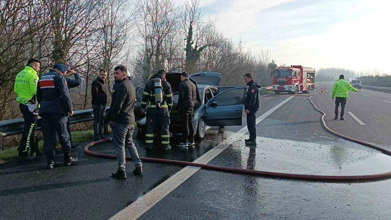 Düzce(İHA) – Kahramanmaraş merkezli meydana gelen 2 büyük depremin ardından Diyarbakır'dan İstanbul'a giden ailenin otomobili tem otoyolu Düzce kesiminde yandı.