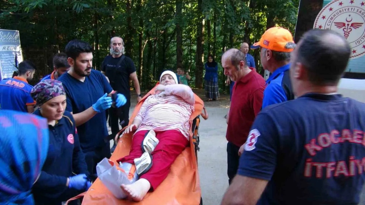 Kocaeli'nin Gölcük ilçesinde doğasıyla hayranlık uyandıran Nüzhetiye Şelalesi'ni görmek için yürüyüş yaptığı esnada düşerek yaralanan kadın, AFAD ve itfaiye ekiplerince metrelerce taşınarak kurtarıldı.