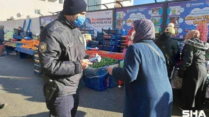 Tekirdağ'da Pazara inen polis ekipleri, pazara inen vatandaşları ve esnafı dolandırıcılık konusunda uyararak, bilgilendirme broşürü dağıttı.