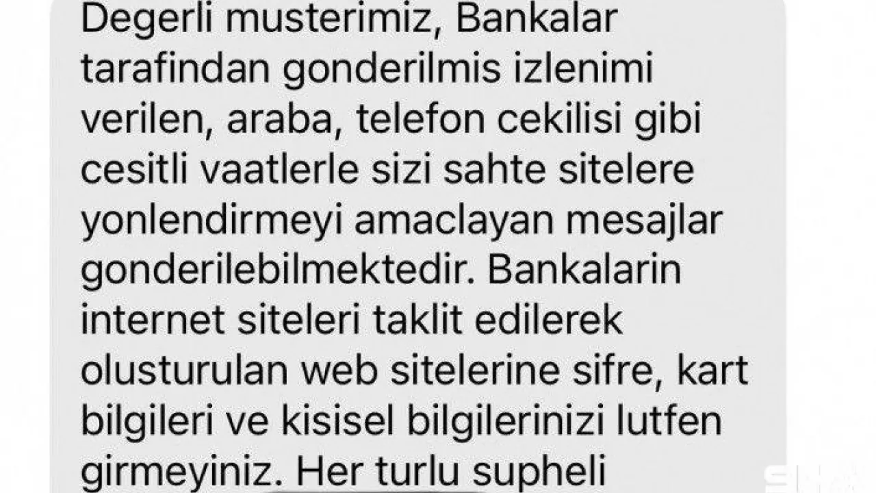 İnternet üzerinden yapılan alışverişlerde sahte siteler üzerinden dolandırılma riski de bulunuyor. Dolandırıcıların yöntemleri ise şaşırtıcı olabiliyor. Kullanıcılarına dolandırıcılara karşı dikkat edilmesi gerektiğini kısa mesaj ile gönderen bankalar, çekiliş vaatlerinde bulunan dolandırıcıların yönlendirdiği sahte sitelere kart bilgilerinin girilmemesi konusunda dikkatli olunması gerektiğini aktardı.